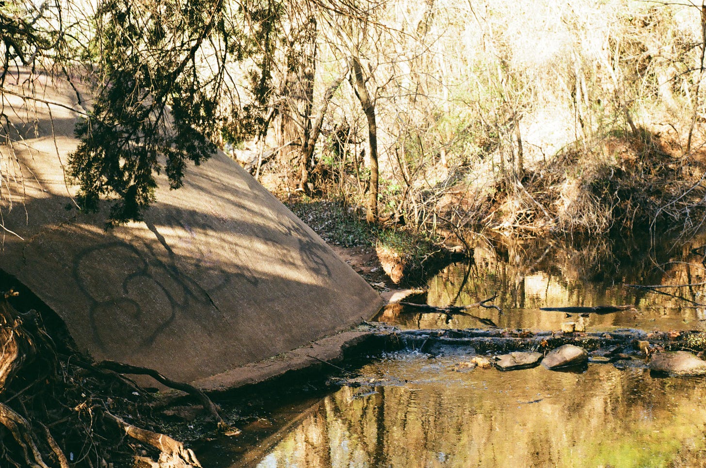 Twisting and turning, with low water and high reeds, a small stream dissuades those not old enough from crossing. During winter it freezes, creating a new path. During the summer, during the rains, it rises - a natural barrier to spaces beyond the park and within the woods. Old places are now cut off, only to return to the realm of exploration after the rainy season. The park is no longer a place of play, or honor, but a place to be avoided lest you be lost to the rushing waters that surround it.